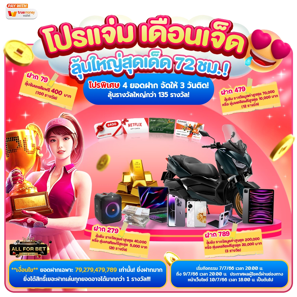 สำหรับผู้ที่สนใจทดลองใช้บริการ เรามีโบนัสพิเศษมากมายรอคุณอยู่ ทั้งโบนัสต้อนรับสมาชิกใหม่ โบนัสการฝากครั้งแรก และโปรโมชั่นคืนยอดเสียรายวัน ด้วยระบบฝากถอนที่รวดเร็วนี้ คุณจะได้รับเงินโบนัสทันทีหลังทำรายการสำเร็จ